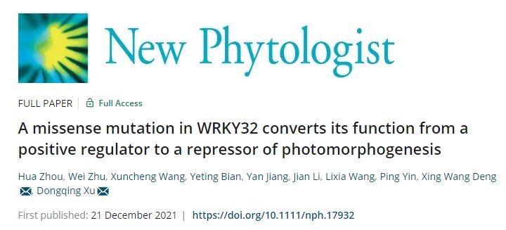 2020年12月21日,国际著名学术期刊《New Phytologist》(IF2020=10.152)在线发表了成人视频-黄色视频-国产黄色视频 许冬清教授和北京大学现代成人视频 邓兴旺院士合作完成的题为“A missense mutation in WRKY32 converts its function from a positive regulator to a repressor of photomorphogenesis”研究论文。该项研究工作得到了国家自然科学基金、江苏省杰出青年基金、江苏省双创人才项目和成人视频 高层次引进人才启动经费和等项目的资助。