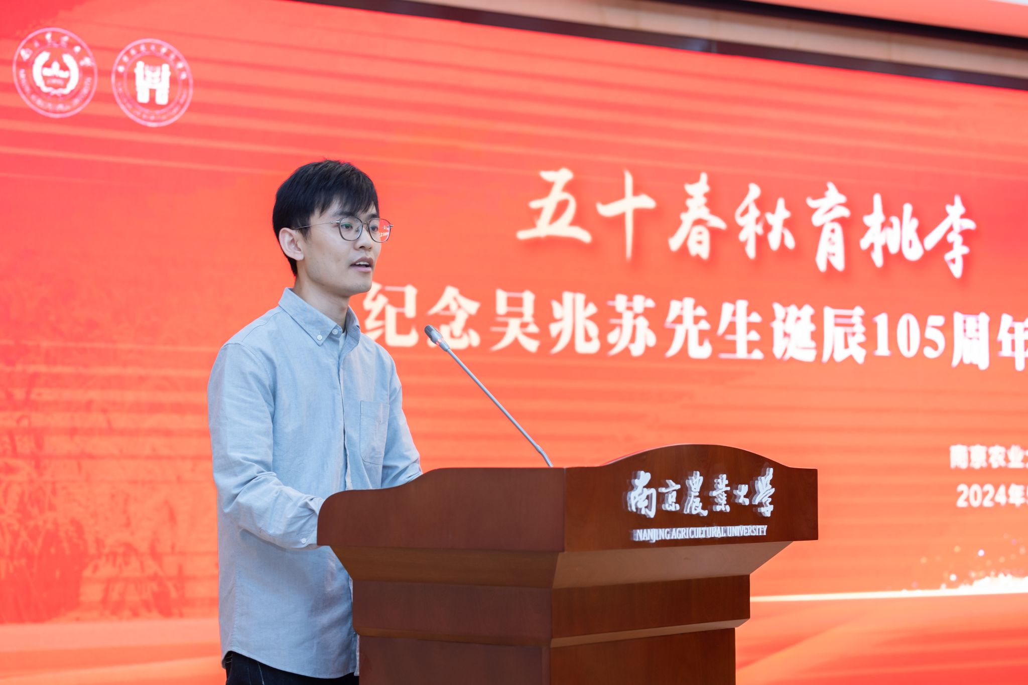王春春高度赞扬了吴兆苏先生对成人视频 小麦遗传育种事业所作出的重要贡献,指出吴兆苏先生一生所追求的是坚守科学报国、留学报国的事业,是半个多世纪麦田守望、躬耕田野的事业,是爱业爱生、潜身育人、桃李满天下的事业。王春春表示,此次纪念活动的举办既是对新时代南农精神的凝练与传承,也是奋力回答好“强国建设、南农何为”时代命题的榜样示范,更是对传承和弘扬新时代科学家精神、教育家精神的生动实践,要求全校师生积极贯彻落实总书记指出的成人视频 现代化关键在科技、在人才的重要核心精神,争出新成果、争做“大先生”,勇担新使命,为端牢中国饭碗、为农业强国建设作出新的更大贡献。