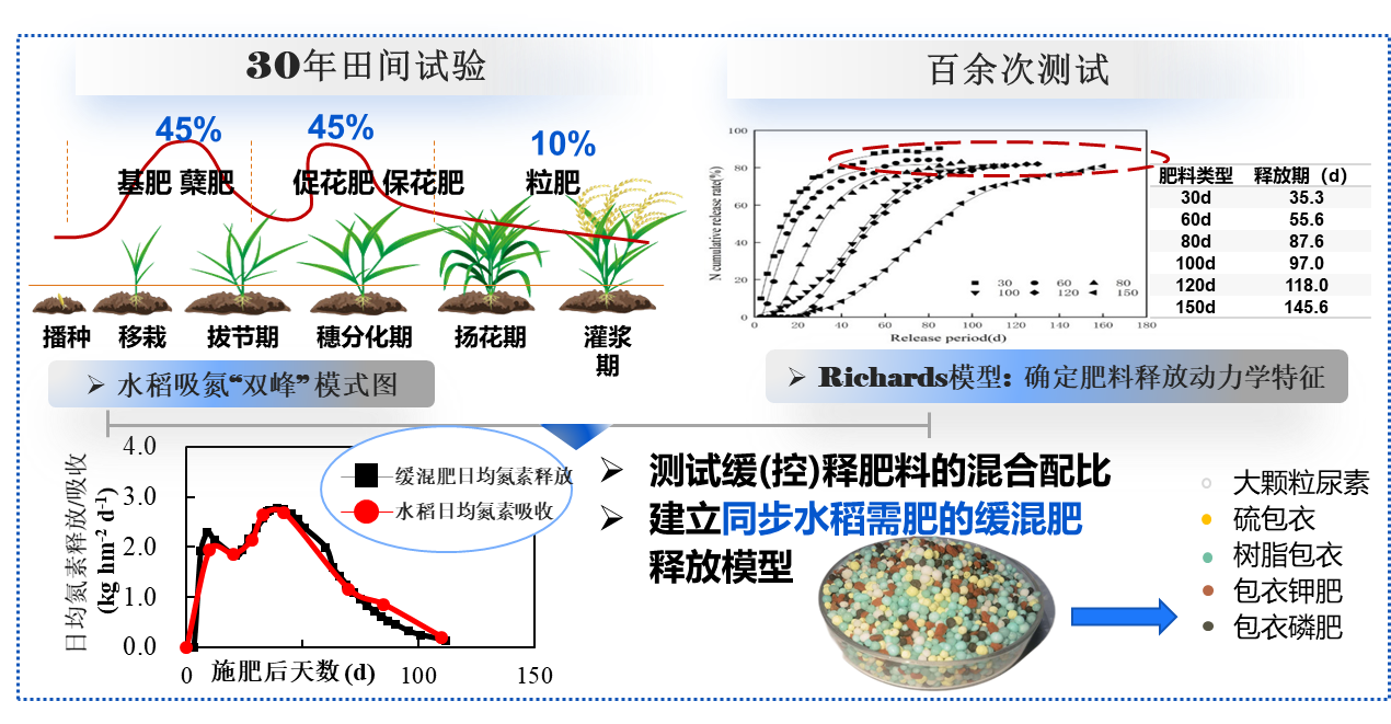 水稻缓混肥创制及一次施用关键技术研发与应用:绿色发展理念下化肥减量精施是水稻产业技术变革的主要方向,研发一次性施用的新型水稻专用肥料是实现化肥减量精施、助推农业绿色发展的重大需求。丁艳锋教授团队针对肥料施用偏多、过频导致的生产成本高、经济效益低、环境风险大等生产难题,通过作物栽培学、土壤肥料学和农业机械工程学等多学科交叉融合,创制了一次精量施用即可满足全生育期养分需求的水稻专用缓混肥,研发了机械化施肥的关键装置与配套栽培技术,突破新型肥料生产关键技术瓶颈,解决了插秧机载肥量不足的关键难题,提高了施肥精度和作业效率,集成了轻量化育秧、缓混肥精确定量设计、机插侧深施肥技术、穗肥应急管理技术和水分精确管理技术,实现水稻绿色、高效、优质生产。三年累计推广800余万亩,节本增效10亿元。研究成果获得高等学校科学研究优秀成果奖(科学技术)科技进步奖一等奖。