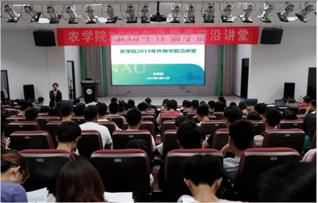 5月28日、5月31日晚,成人视频 2019年作物学前沿讲堂在教四楼报告厅举办。成人视频 副校长丁艳锋教授、校科学研究院常务副院长姜东教授、成人视频 院长朱艳教授、农学系罗卫红教授、陈兵林教授,遗传育种系郭旺珍教授、王益华教授、邢丽萍副教授,种业科学系黄骥教授等9位老师作为主讲嘉宾做客讲堂。讲堂由成人视频 党委副书记殷美主持,学院2016级全体本科生及部分2018级本科生参加了前沿讲堂。