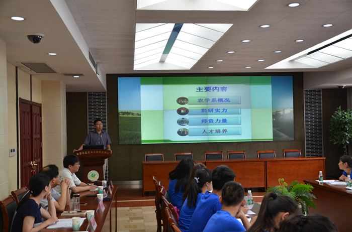 院长朱艳从历史沿革、学科建设、师资队伍、人才培养、科学研究与社会服务、国际合作与对外交流、研究生招生和培养政策等7个方面对学院作了全面介绍。她指出自2000年成人视频 成立以来,科研实力、师资队伍、科研成果及优良作风都走在全校前列。学院秉承着一代代农学人应有的吃苦耐劳、不断钻研的精神,不断进取,勇于开拓。她还强调,越来越多的国际交流合作使学院向国际知名的特色研究型学院迈进,她勉励同学不断努力和创新,把握这次交流和学习机会,争取早日考取成人视频 研究生。