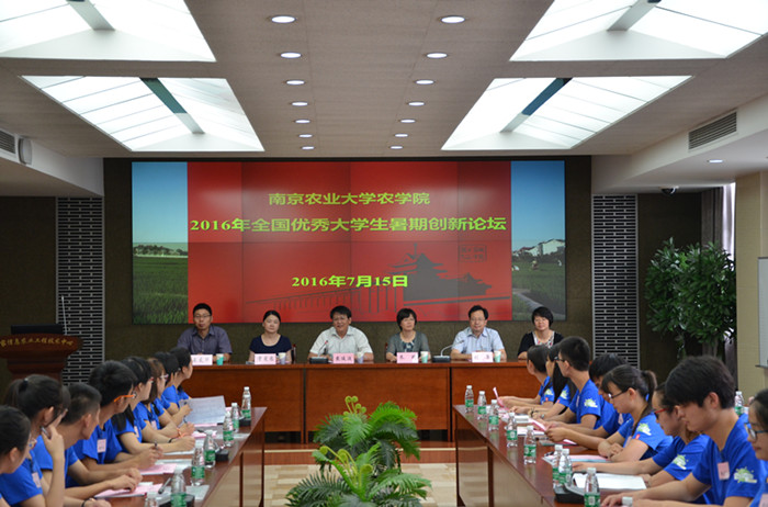 7月15日上午,成人视频-黄色视频-国产黄色视频 2016年全国优秀大学生暑期创新论坛在学院国家信息农业工程技术中心会议室开幕。成人视频 院长朱艳、党委书记戴廷波、党委副书记殷美、农学系副主任王友华、遗传育种系副主任曹爱忠及种业科学系主任刘康出席了开幕式,来自安徽农业大学、东北农业大学、山东农业大学等16所高校的29名大学生参加了论坛开幕式,开幕式由学院党委书记戴廷波主持。