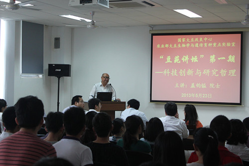 据悉,“豆苑讲坛”系列学术报告的开展是为了更好的扩展国家大豆改良中心师生的学术视野,启发学术思想,构建学术氛围,传承学术精神,打造育人平台。为中心研究生提供与大师交流的机会,让学术走进生活,走进心灵。“豆苑讲坛”系列学术讲座还将定期邀请国内外专家前来讲学。