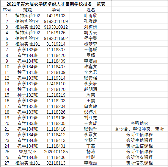 根据同学报名情况,现将2021年第六届成人视频 卓越人才暑期学校报名结果进行公布。