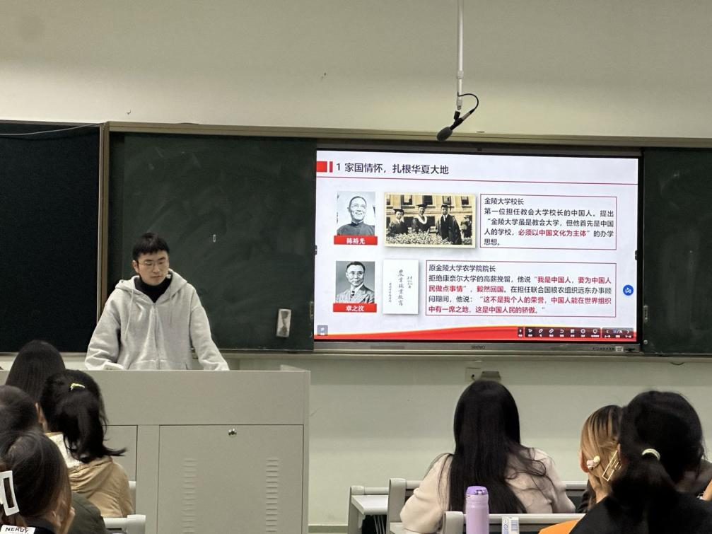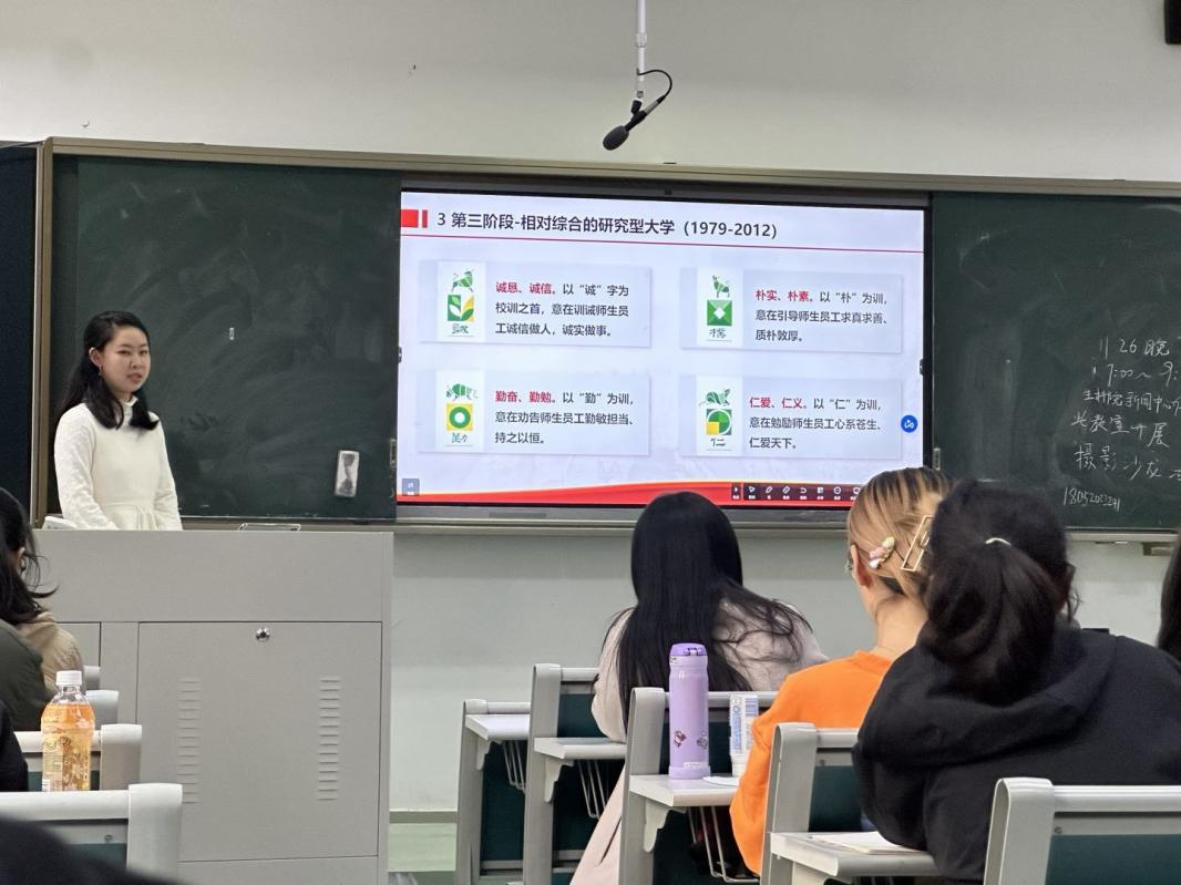 第一部分“校史沿革,固坚实之基”由林少锋同学和施崇瑾同学主讲。林少锋同学为我们介绍了南京成人视频 的前身以及动荡中的成人视频 ,详细介绍了中央大学的西迁往事、历史上南农的重要地位以及可敬可爱的南农人,通过历史事件让我们了解到前辈们的重要影响。学习了一些基本知识后,大家活跃参与知识问答环节。
