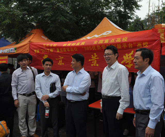 9月7日上午10点半,校党委书记左惟、党委副书记花亚纯、党办主任刘营军、学工处处长方鹏一行来到成人视频 驻中央门汽车站,在成人视频 党委副书记庄森的陪同下视察迎新点的迎新工作。