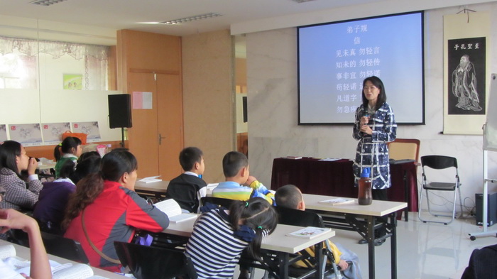 义务清扫活动结束后,社区文化论坛正式开始。首先由河海大学国学社的胡老师为社区孩子们讲授传统文化课《弟子规》,《弟子规》凝聚了中华传统博大的智慧,它阐释了“弟子”在家、在外、待人接物、为人处世、求学等方面应具备的礼仪与规范。陈老师采用引导式的教学方法,首先提问孩子对于《弟子规》的理解,然后声情并茂地对《弟子规》中的三字句逐字解释,让孩子们潜移默化的环境中加深对传统文化的学习和理解。随后,志愿者与传统文化义工团共同为社区孩子们上绘画课,开发了孩子们的想象力。志愿者们表演唱歌、跳舞、相声的节目沸腾了全场,获得了热烈的掌声。最后由志愿者成员张淋翔带社区孩子们走进 “七彩课堂——回顾历史”历史课堂。此次课堂讲述了诸葛亮的一生以及对他的评价,课上孩子们踊跃发言,对提出问题的回答角度新颖,在场的志愿者们也积极参与讨论,纷纷提出了自己的观点和见解,课堂气氛活跃。