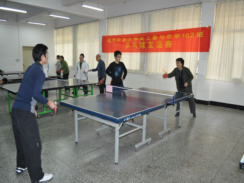 这次的乒乓球友谊赛共分两部分:第一部分为团体比赛,由农学102学生队对阵关工委老同志队;第二部分为个人比赛,参加运动员均为农学102班的同学。