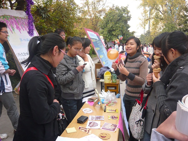 11月24日,成人视频 团委科协举办了以“振兴农产品营销,振兴农业发展”为主题的“农产品创意推销大赛”初赛。二十支参赛团队在玉兰路上分别设摊位进行现场推销,一时间玉兰路上人声鼎沸,完全契合了“农产品一条街”的称号。