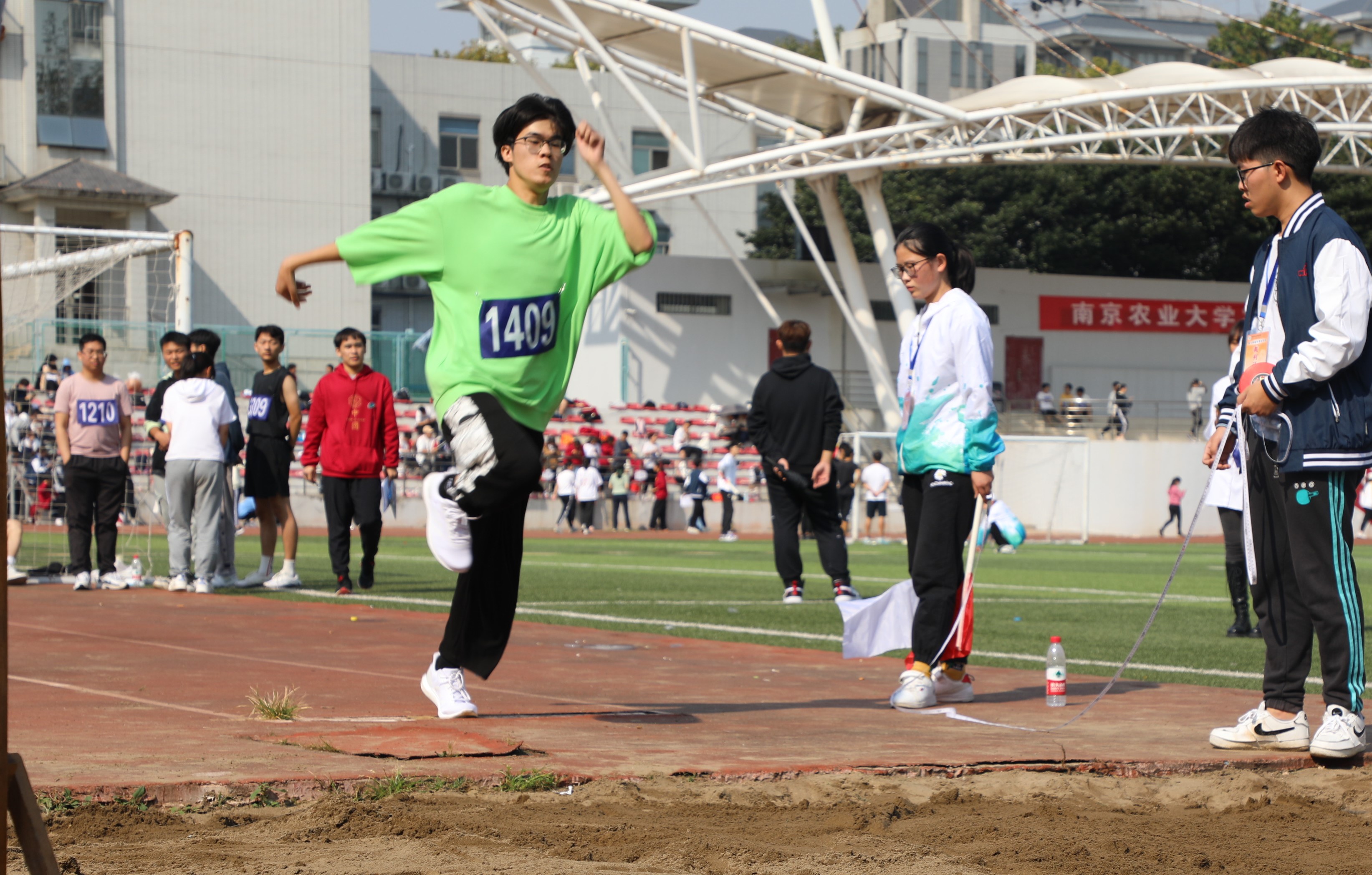 上午九点一刻,运动员们立刻投入到了比赛中。本次运动会一如往常,共设置田赛、径赛和集体比赛三大类项目。运动健儿们踊跃参与,挑战自我,观众们也热情呐喊助威,将运动场上的气氛点燃了起来。发令枪旁,健儿们摩拳擦掌,蓄势待发;跳远场上,他们充满自信,奋力一跃;跳高场上,他们不断挑战地心引力,刷新成绩;掷铅球和垒球的项目中,他们在千钧一发的时刻,拼尽全力;集体项目中,所有同学都团结合作,齐心协力。最后,运动会于下午六点在决出拔河第一名的欢呼声中结束了,农学实验201、植物实验211和农学193分别以96.5、91和82的总积分获得本届运动会的前三名。