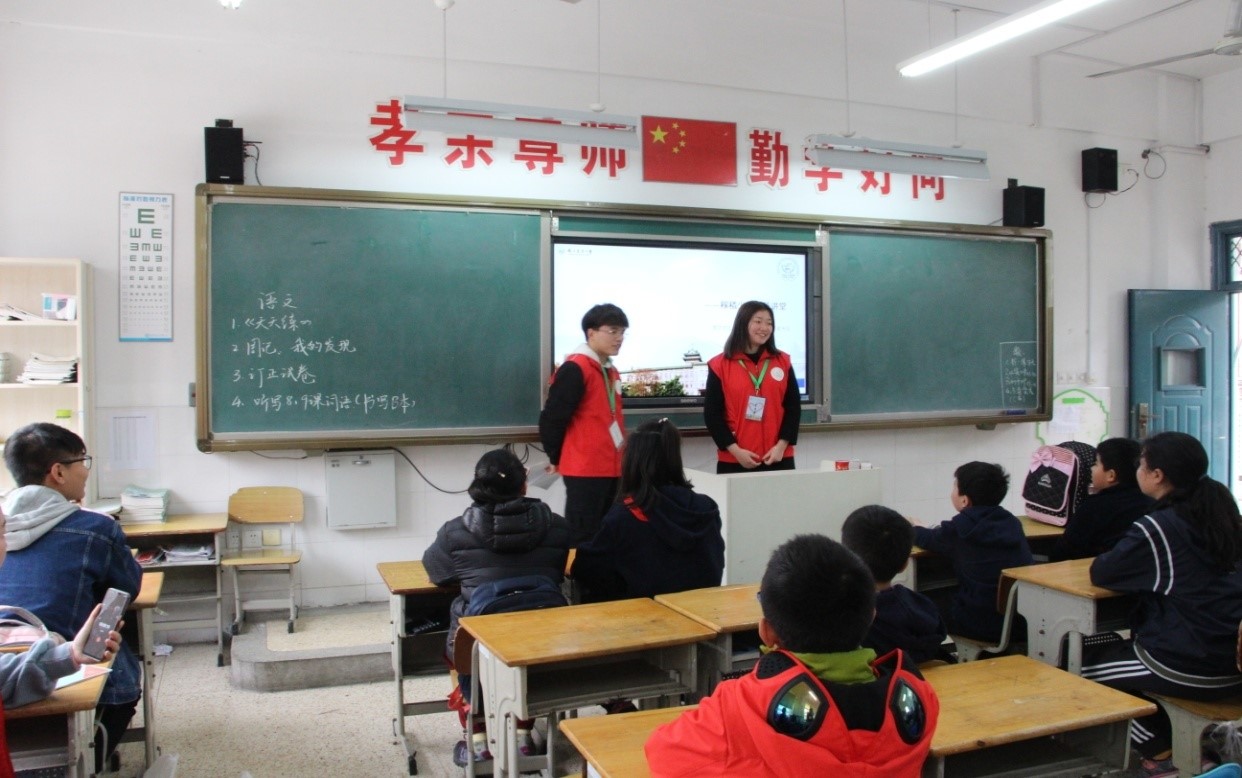 3月29日下午,成人视频 青年志愿者大队的负责人和6名志愿者在南京理工大学实验小学四年级(3)班教室,开展了新一学期的“稼穑少年”科普课堂志愿活动,约30名小学生参与了本次课堂活动。