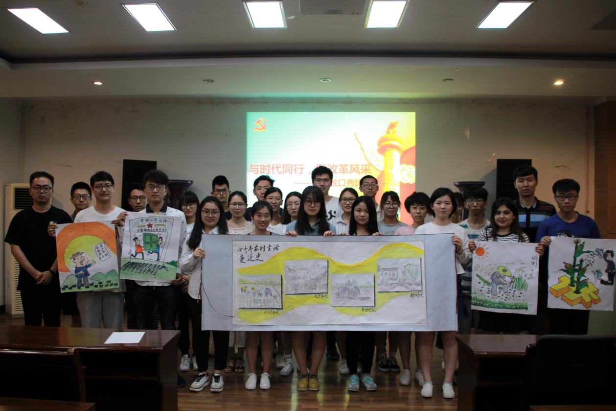 分党校联合农学专业一党支部举办了此次以“与时代同行,展改革风采”为主题的改革开放四十周年主题教育活动,各支部成员从政治、经济、文化、生活四个方面展示了改革开放以来中国发生的巨大变化。本科生辅导员王彬老师、姚敏磊老师、马丽娟老师及各支部书记出席并担任本次比赛的评委。