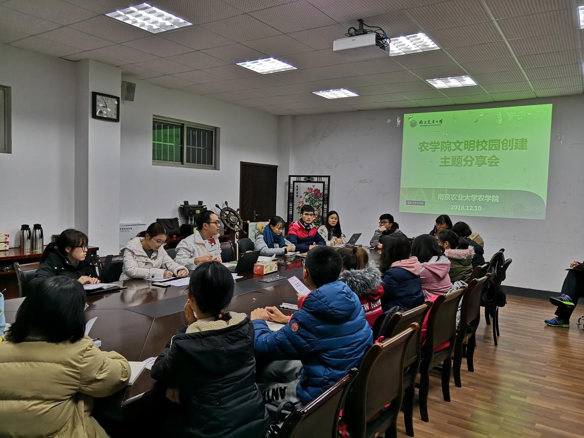 为相应南京市建设文明城市号召,配合学校文明校园的建设,成人视频 于12月10日晚在生科楼B1001会议室举办“文明校园创建主题分享会”。大学一年级、二年级和三年级各班班长及团支书参加了此次分享会。本科生辅导员姚敏磊主持会议。