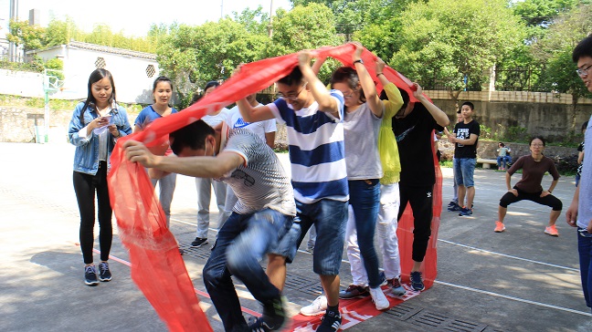 本次趣味运动会围绕着“跃动青春,活力飞扬”的主题,设置了六个趣味运动项目,分别是定点投篮、猛龙过江、无敌风火轮、乒乓接力、室外保龄球、合力写字。