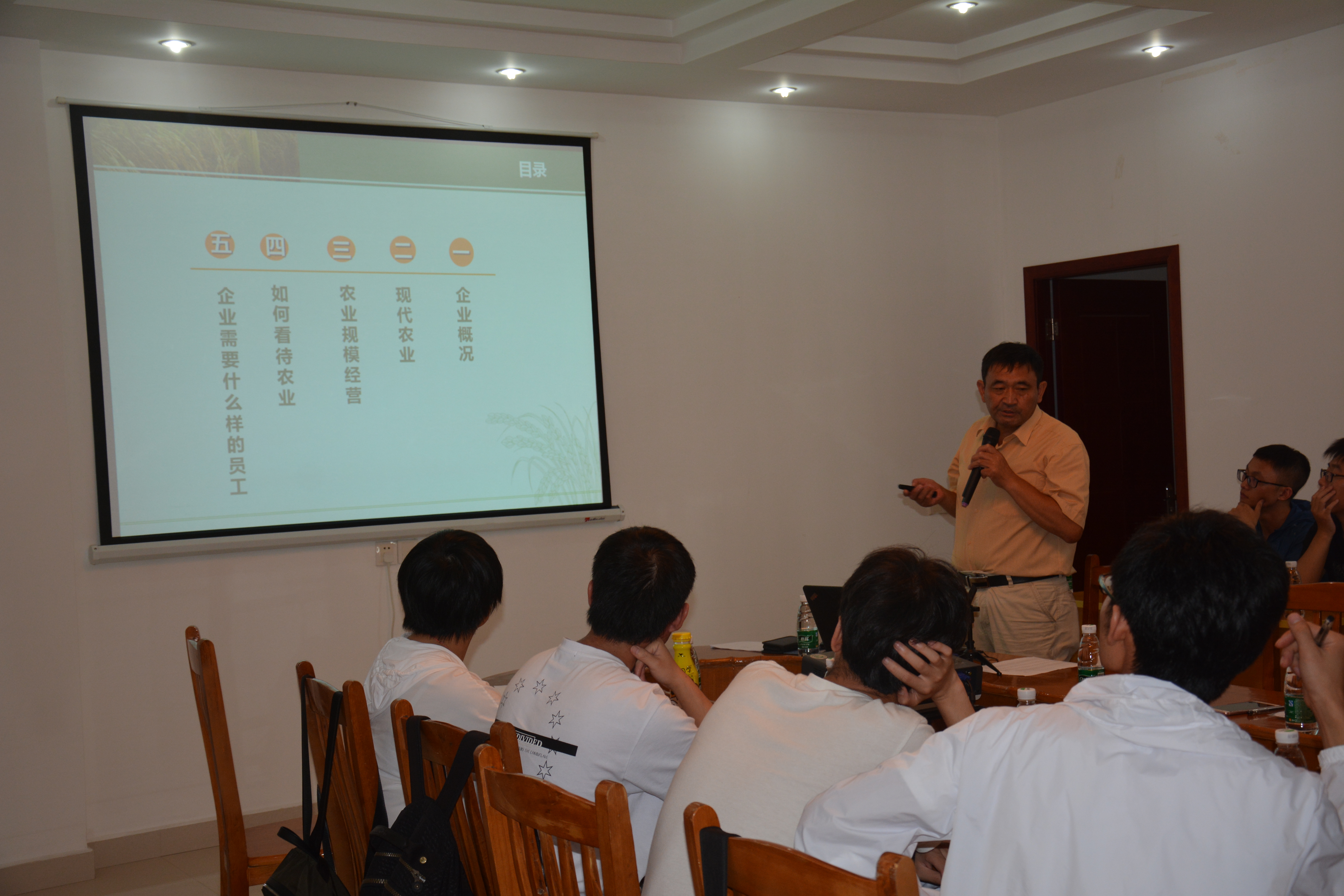 之后,王宣山研究员给大家作了以“以规模经营引领现代农业发展”为题的报告,他从企业概况、现代农业、农业规模经营、如何看待农业、企业需要什么样的员工等五个方面给大家作了详细的讲解,同学们从报告中了解到金色农业研究生工作站的优劣势、面临的机会与挑战;国家《“十三五”农业科技发展规划》中现代农业的发展目标、成人视频 人才队伍建设等内容。最吸引同学们的部分是企业需要什么样的员工,王宣山研究员通过分析普通员工和优秀员工的十大区别,让同学们知道自己应该怎么做,才能在如今激烈的就业形势下找到满意的工作。